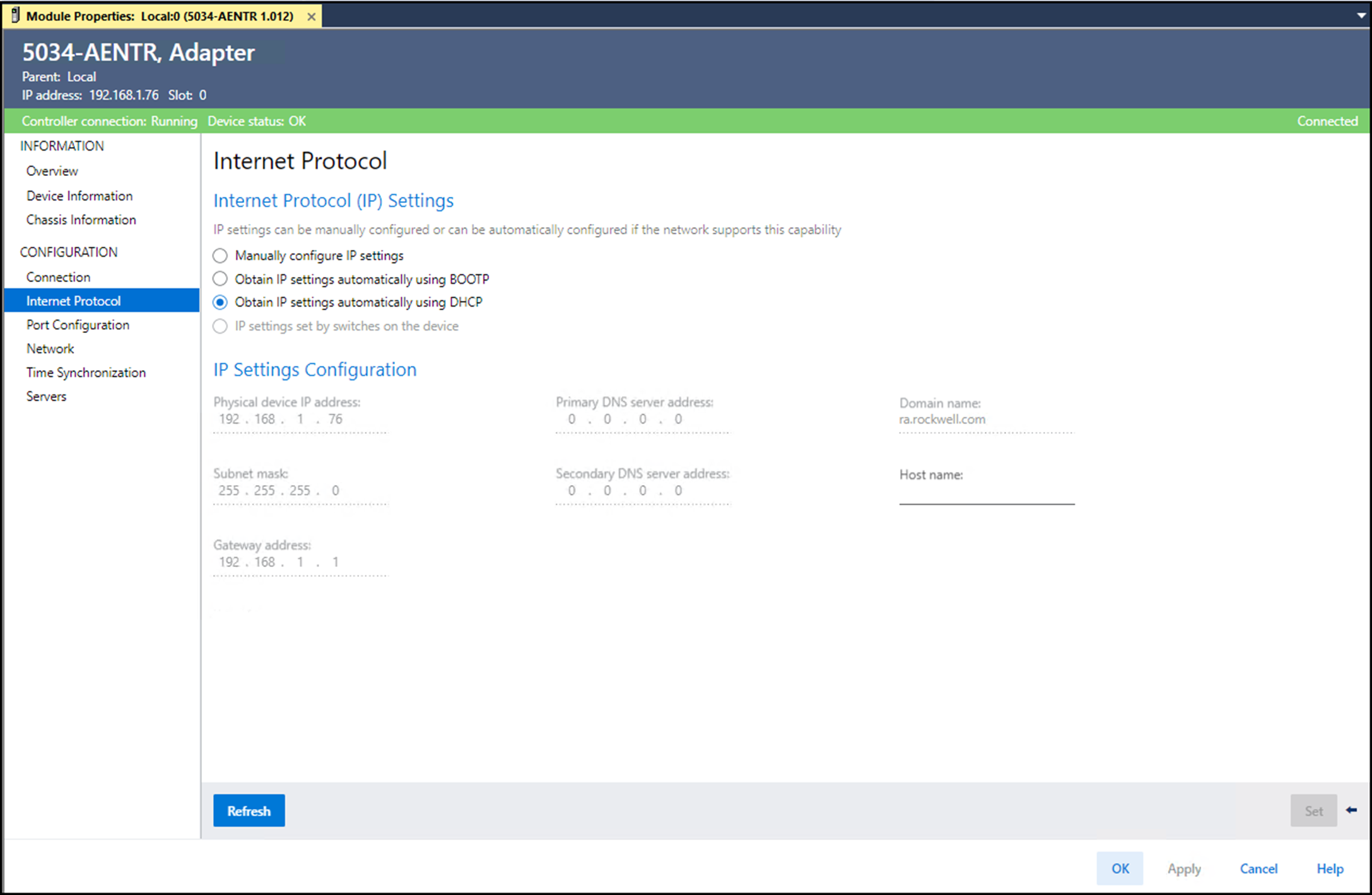 5. Wählen Sie in der Ansicht „Module Properties“ (Moduleigenschaften) die Option „Internet Protocol“ (Internet-Protokoll) aus.