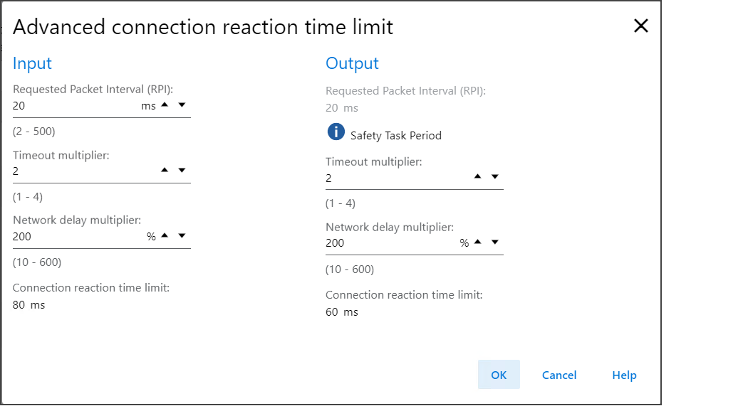 Der Zeitraum der sicherheitsgerichteten Aufgabe bestimmt das angeforderte Paketintervall des Sicherheitsausgangs.
