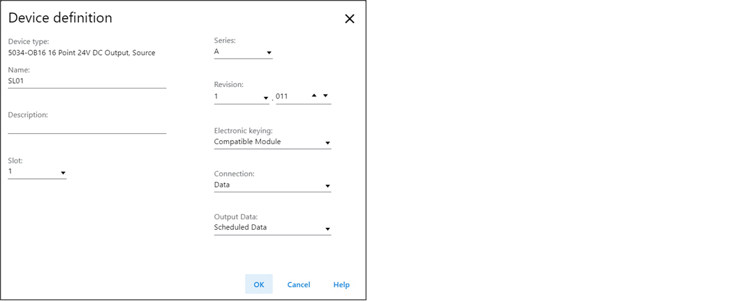 Bei Auswahl von „Listen Only Data“ (Listen-Only-Daten) stellen die Steuerung und das Gerät die Kommunikation her, ohne dass die Steuerung Konfigurations- oder Ausgangsdaten an das Gerät sendet. Eine vollständige Eingangsdatenverbindung wird hergestellt, hängt jedoch von der Verbindung zwischen der Steuerung mit Verwaltungsrechten und dem Gerät ab.
