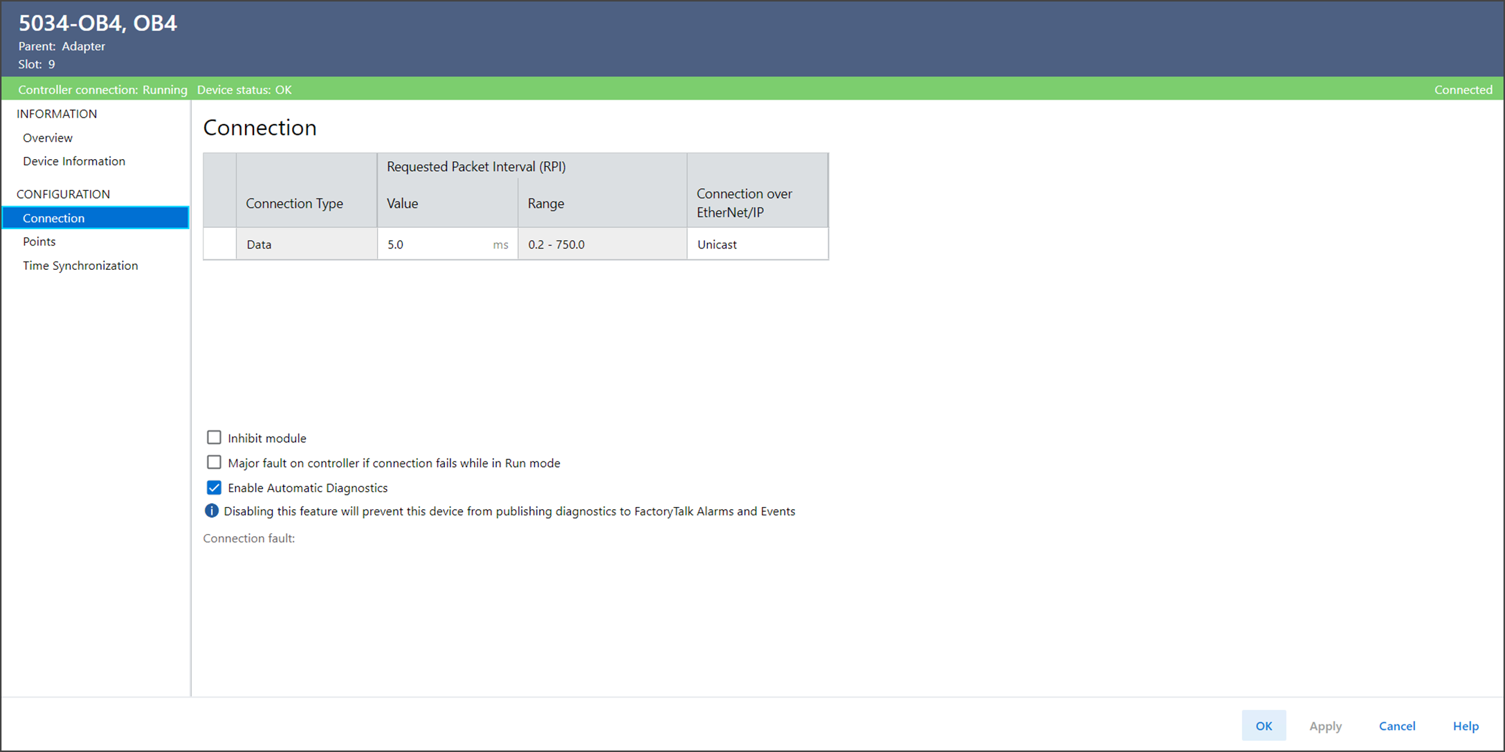 - Konfigurieren der Fehlerantwort für Verbindungsfehler, während sich die Steuerung im Run-Modus befindet.