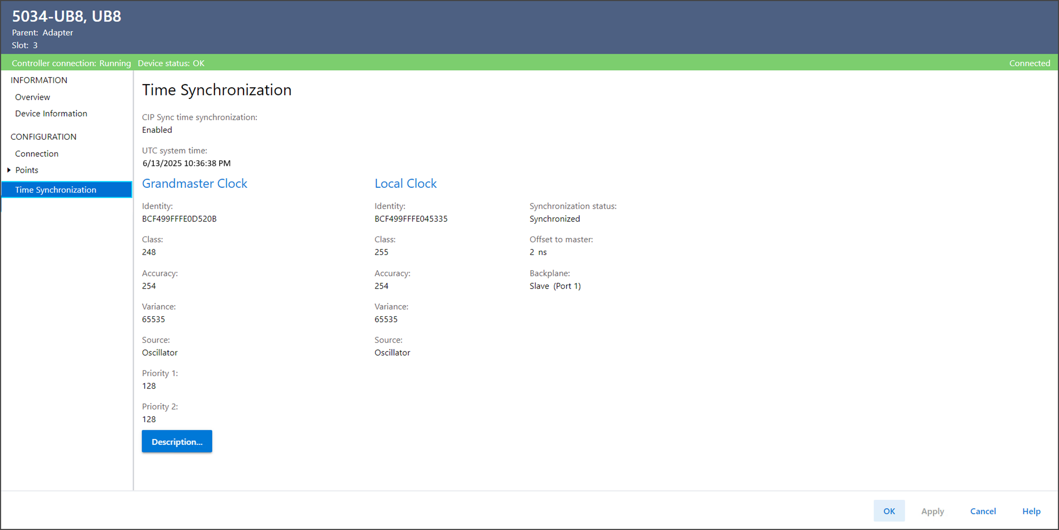 In der Ansicht „Time Synchronization“ (Zeitsynchronisierung) werden CIP