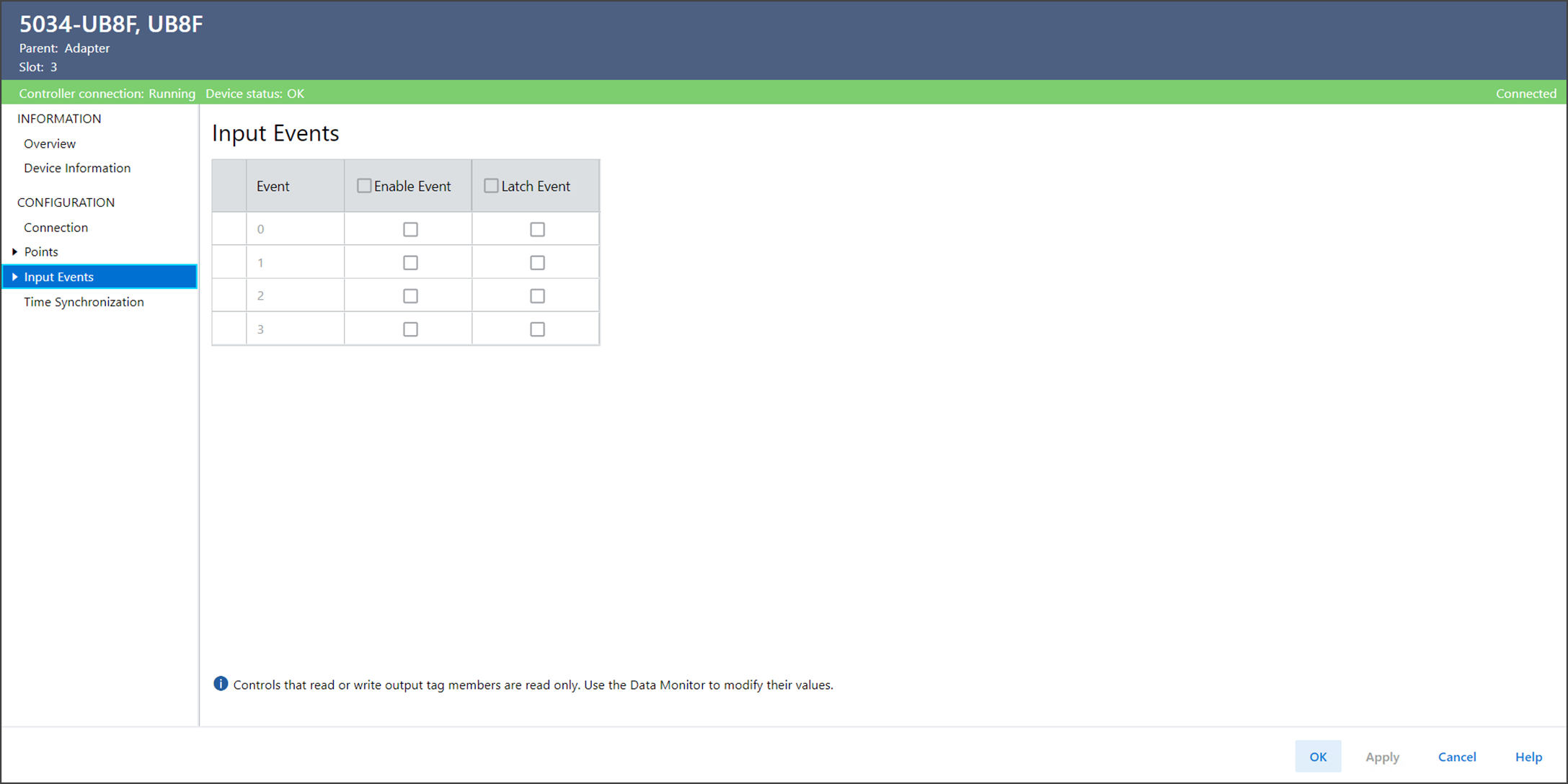 Die Ansicht „Input Events“ (Eingangsereignisse) umfasst die folgenden Parameter: