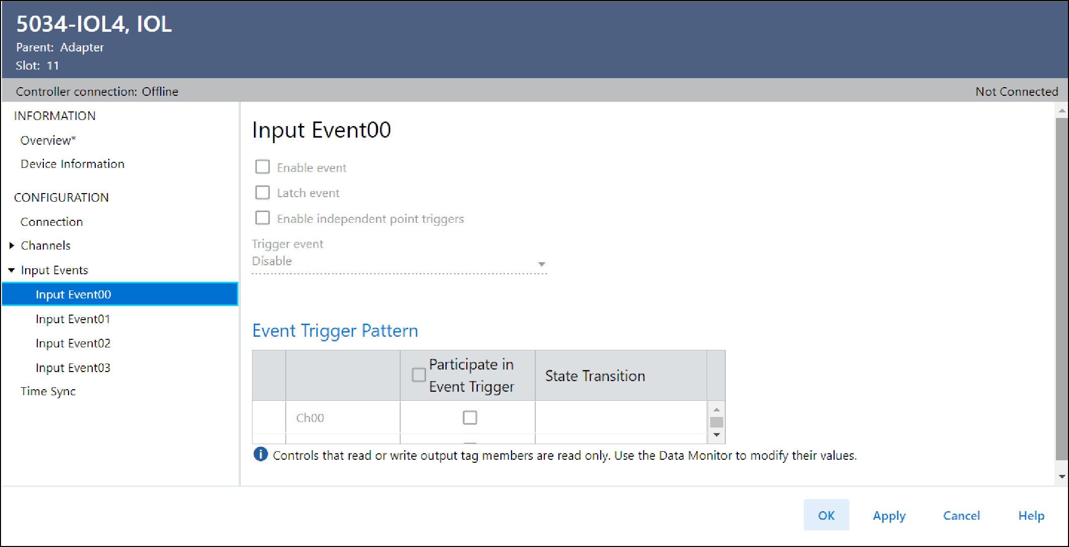 - Ob die unabhängigen Punktauslöser für das Eingangsereignis aktiviert sind.