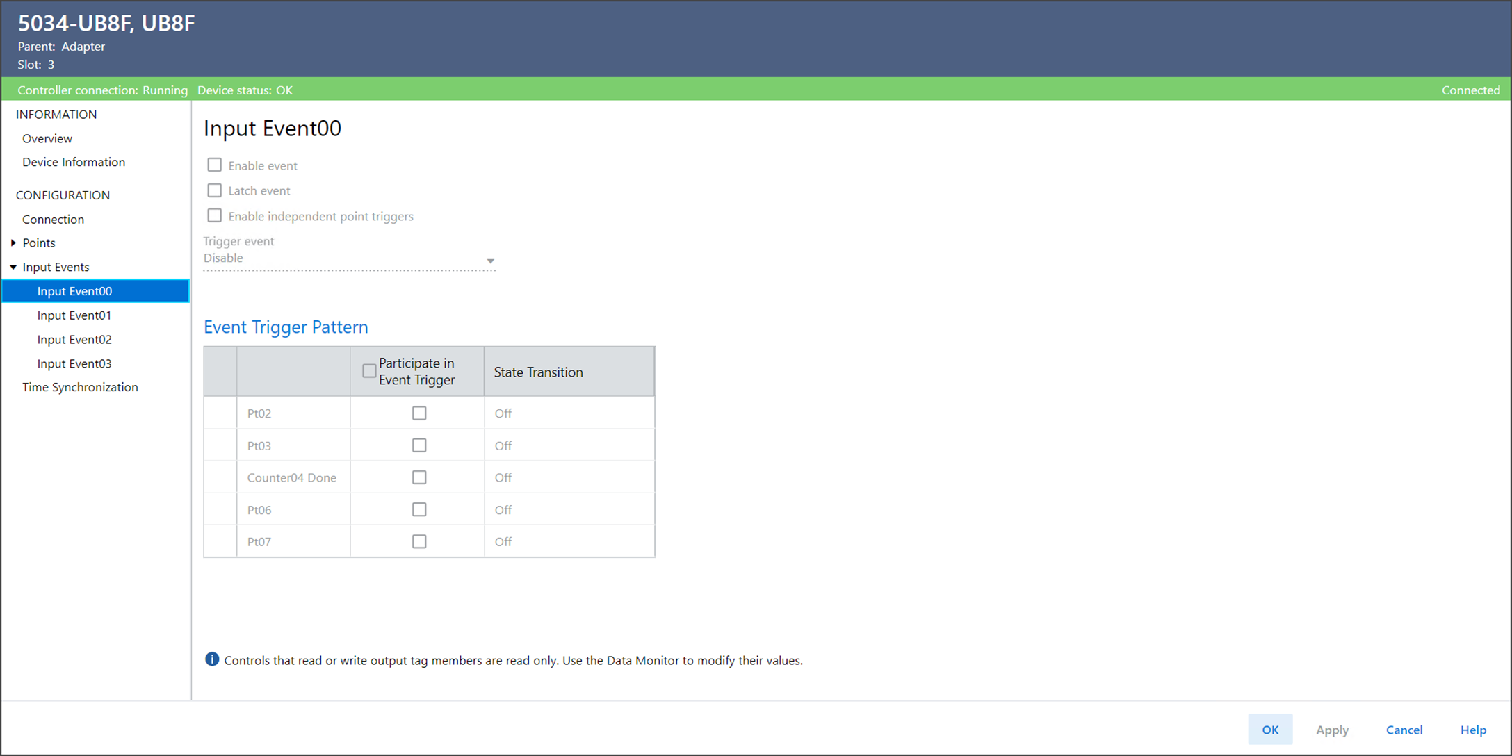 The Input Eventxx view, where 'xx' represents the index of an event definition, shows the
