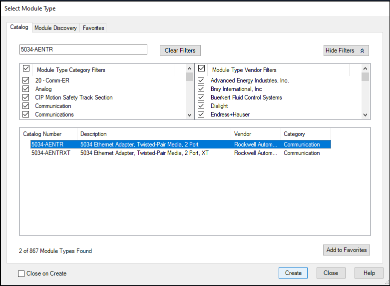 - Select your adapter from the search result.For some modules, the Select Major Revision dialog can appear. If this dialog appears, choose the major revision of the module and select OK