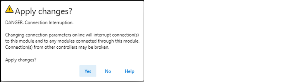 - On the Module Properties dialog, select OK.IMPORTANT:If you try to change the IP address on this page, the following alert appears: