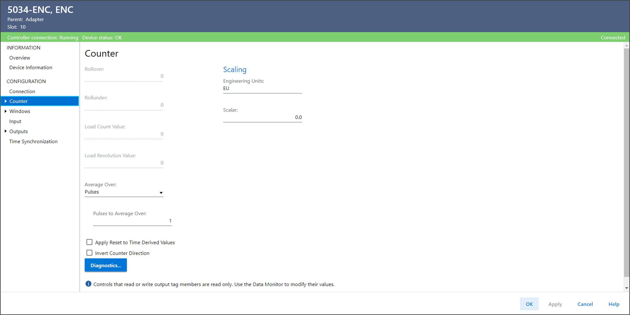 Counter is available only if you choose HSC for the Encoder Type parameter in the Device