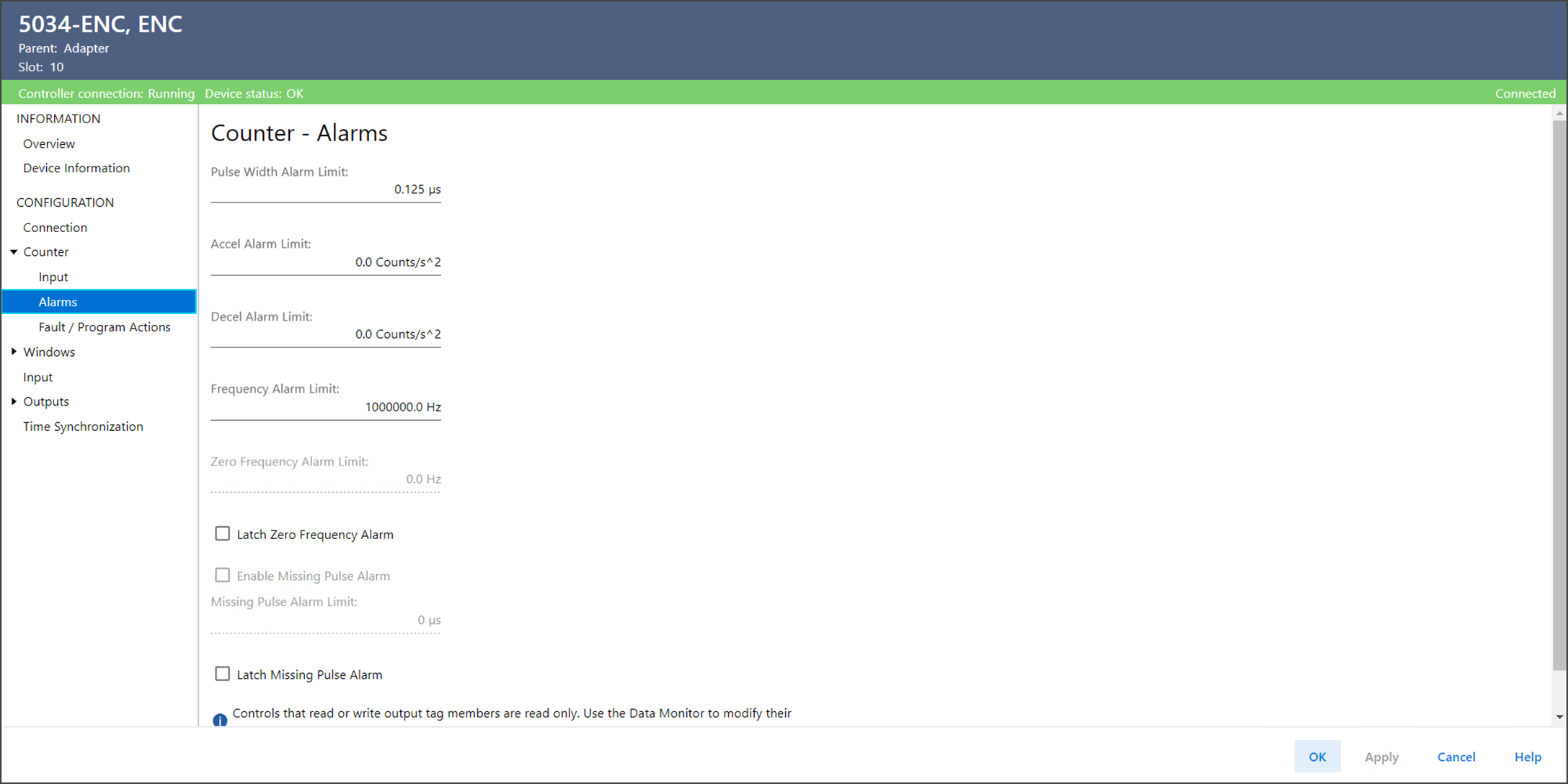 Enable Missing Pulse Alarm | Determines whether the missing pulse alarm is enabled. |