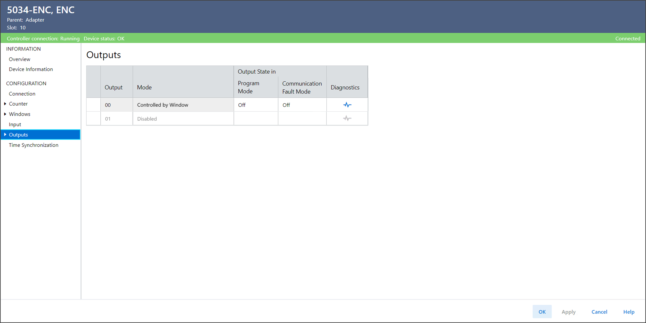 To view the Outputxx diagnostics, select Diagnostics Outputs view.