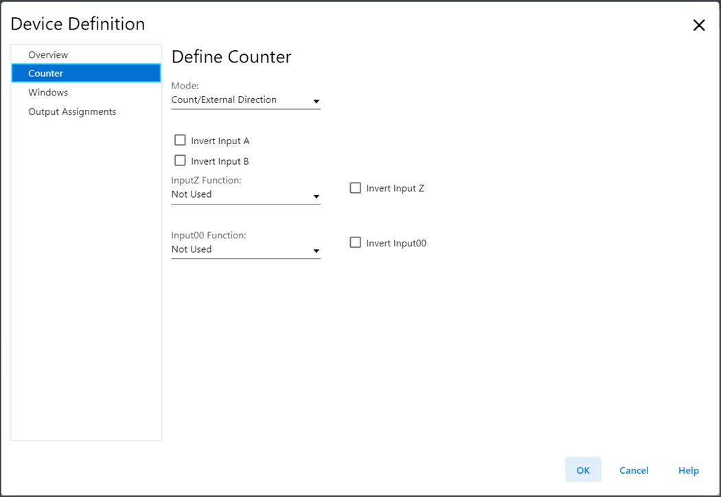 Use Define Counter to define the counter parameters when the Encoder Type is