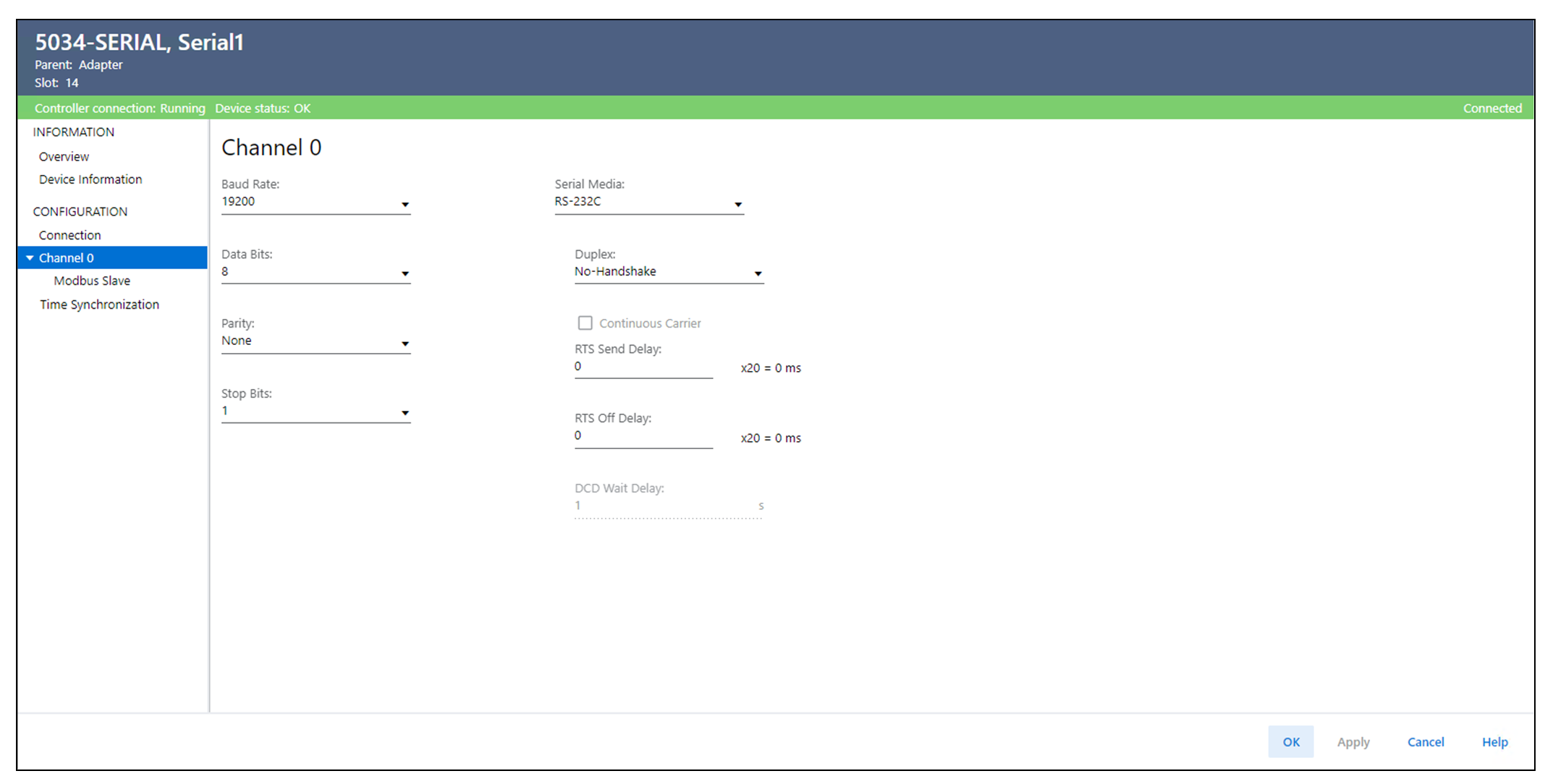 Determines whether the media connected to the channel's Serial port is RS-232C, RS-422, or RS-485.