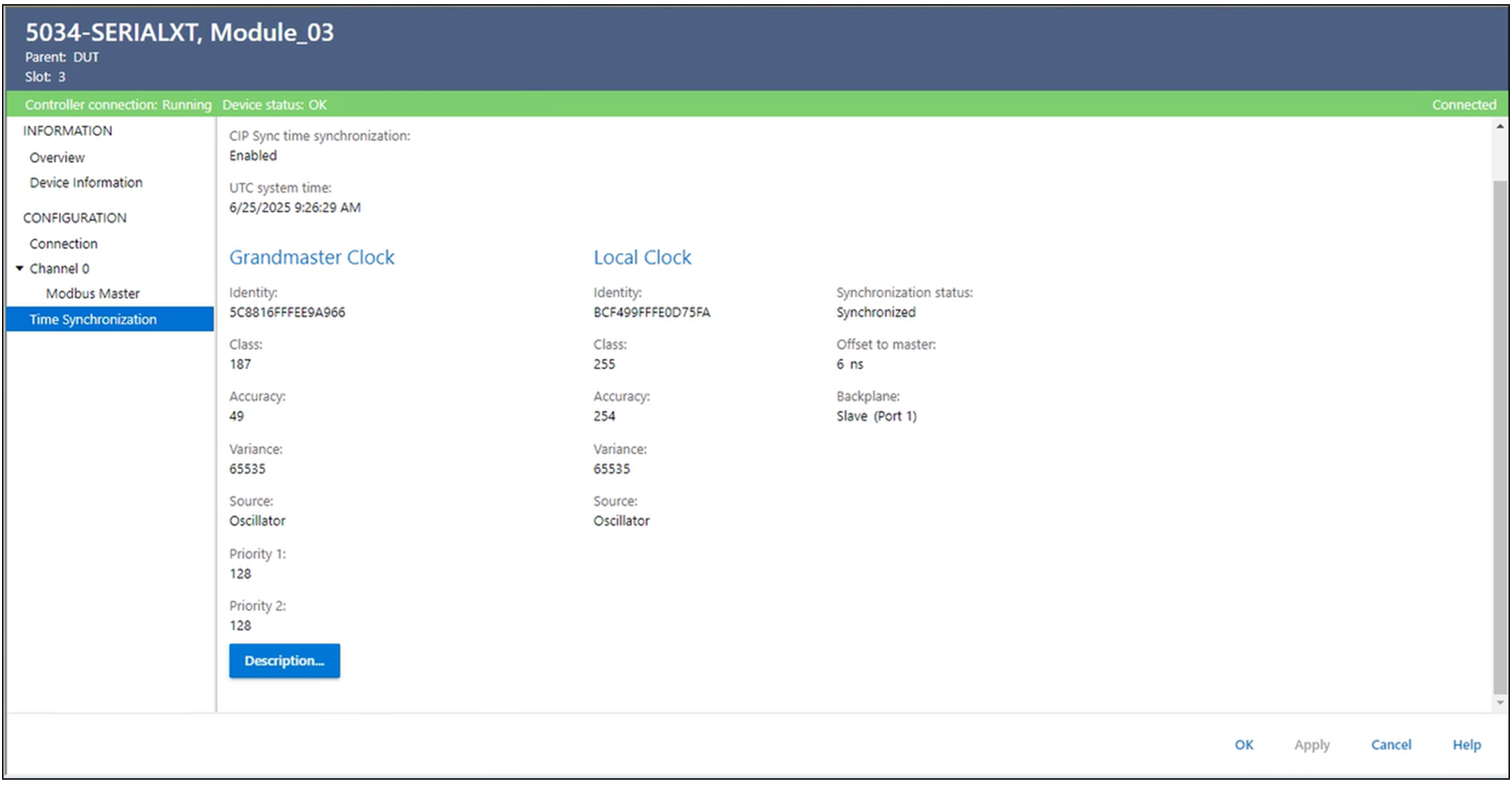 detailed information about the grandmaster clock. To view the Grandmaster clock