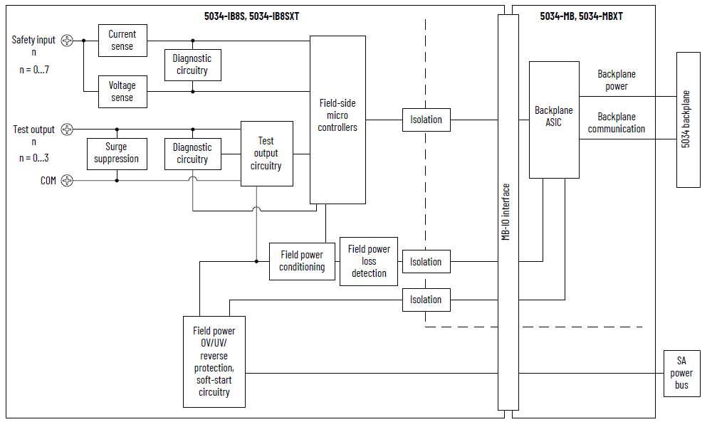 Diagrama de bloques de funciones de los módulos 5034-IB8S y