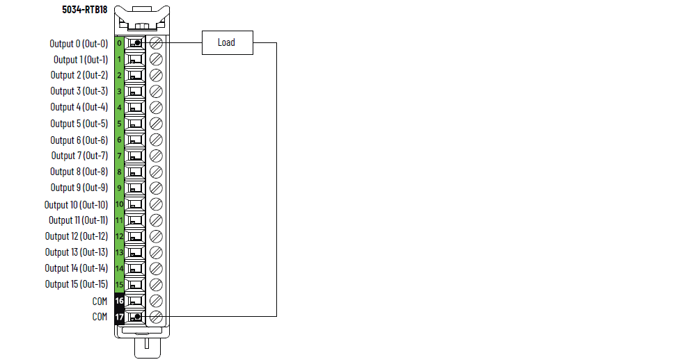Diagrama de cableado de los módulos 5034-OB16 y 5034-OB16XT