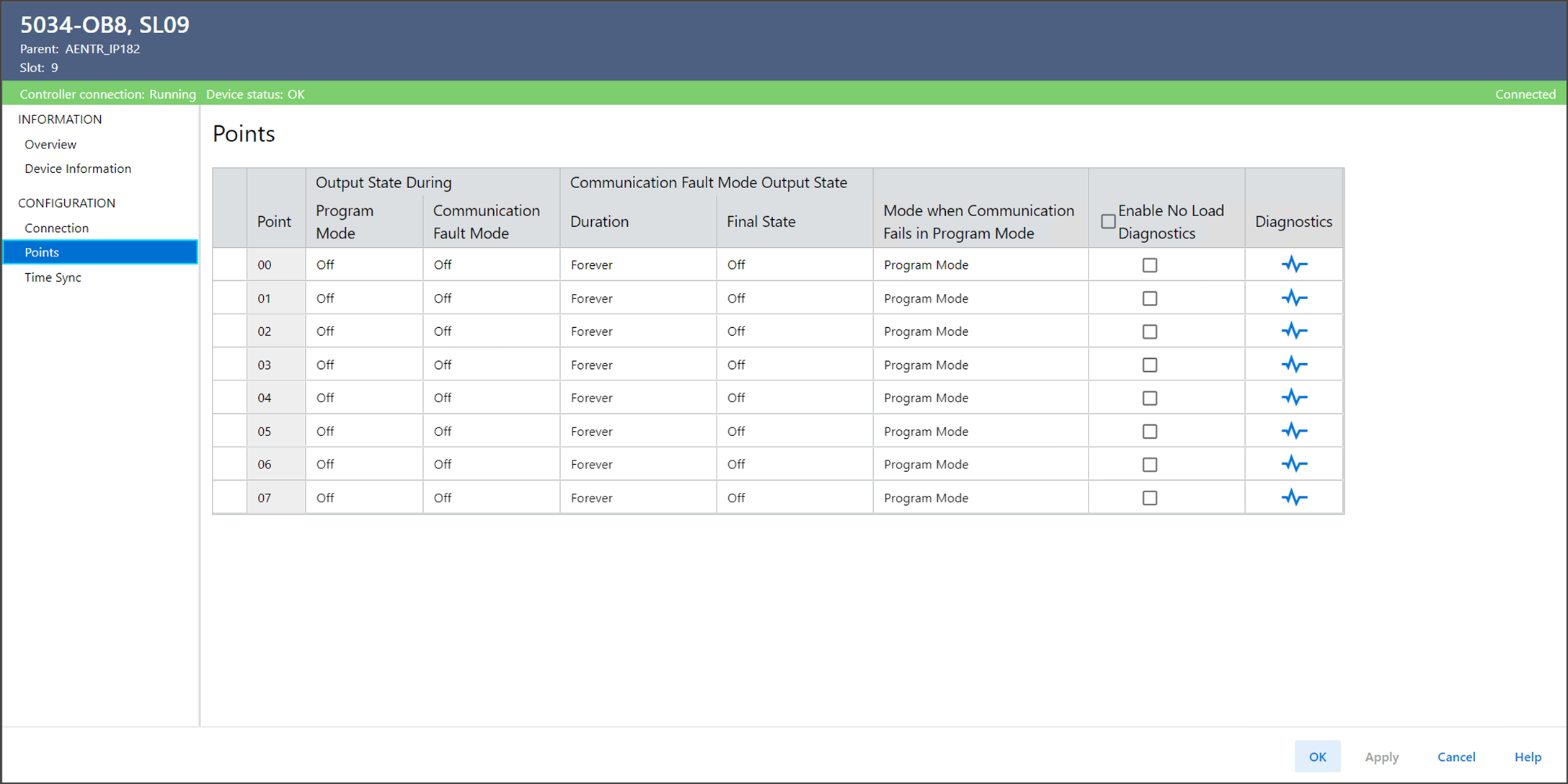 Para ver el diagnóstico de Ptxx, seleccione Diagnostics en las vistas Points o Ptxx.
