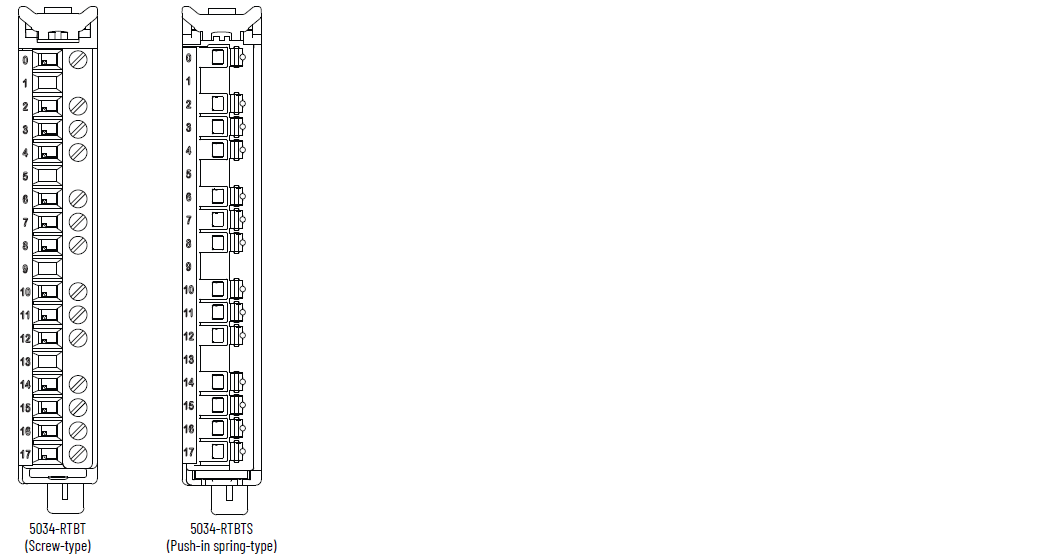 Utilisez ces borniers débrochables avec les modules RTD/TC analogiques isolés à 4 entrées 5034-IRT4I et 5034-IRT4IXT pour obtenir une meilleure précision.
