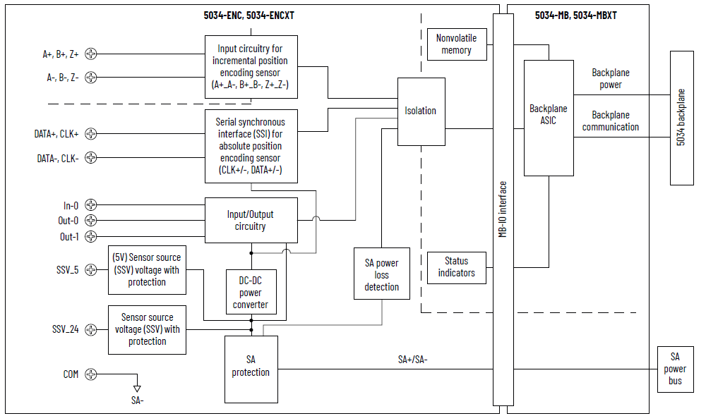Schéma de câblage 5034-ENC et 5034-ENCXT – Codeur absolu/SSI