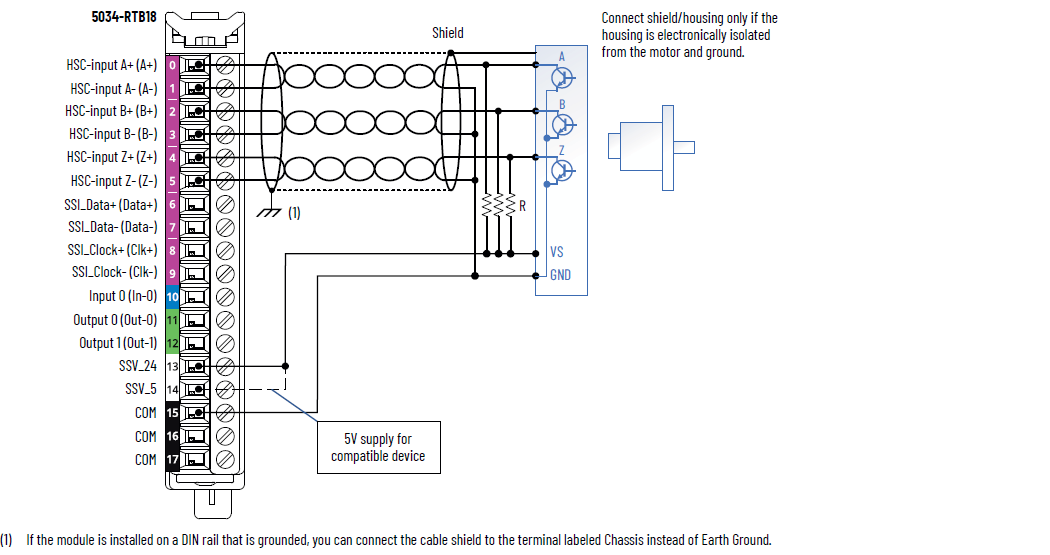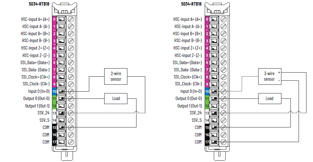 Schéma de câblage 5034-ENC et 5034-ENCXT – Codeur incrémental/HSC