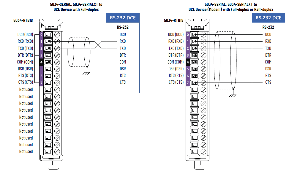 Schéma de câblage 5034-SERIAL et 5034-SERIALXT – Dispositif DCE en mode RS-232