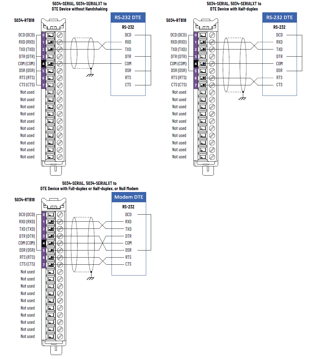 Schéma de câblage 5034-SERIAL et 5034-SERIALXT – Dispositif DTE en mode RS-232