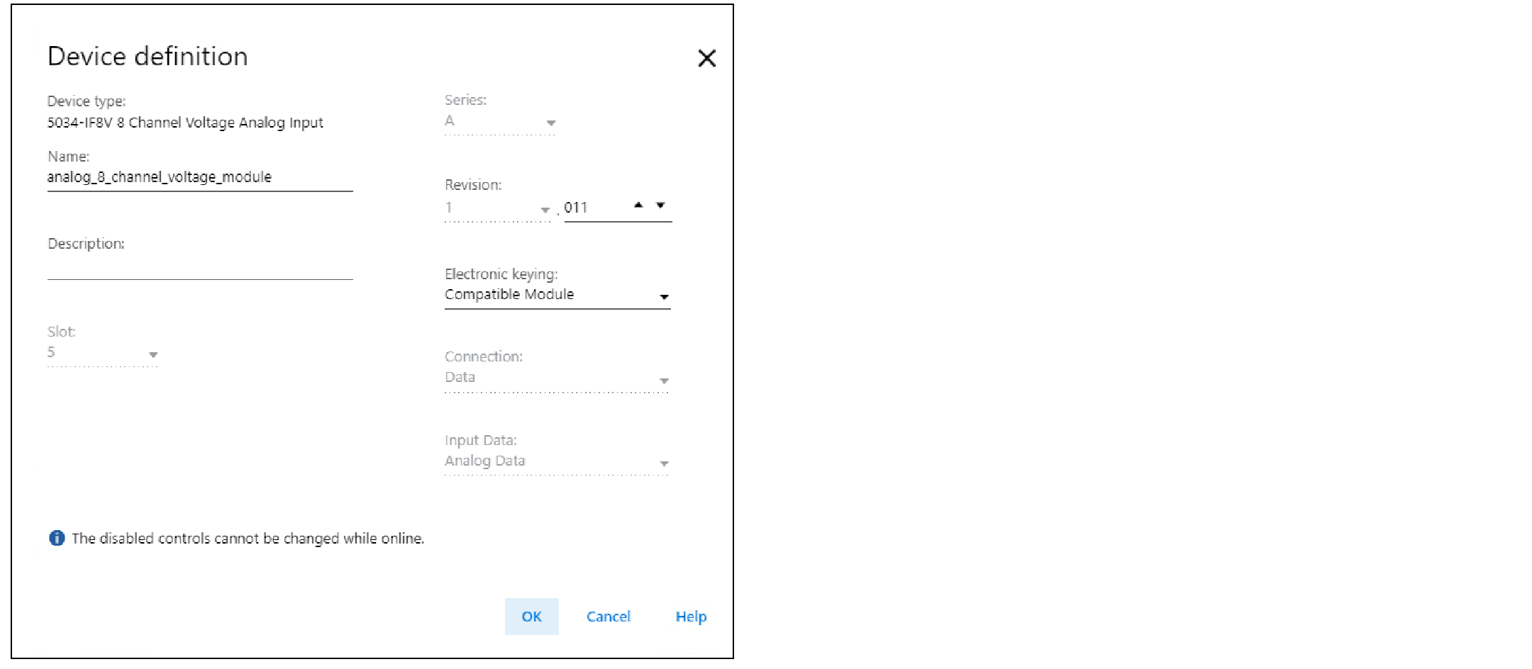 Electronic Keying (Détrompage électronique) | Définit le détrompage électronique utilisé pour le dispositif. La fonction de détrompage électronique compare le dispositif défini dans votre projet au dispositif installé. En cas d’échec du détrompage, un défaut se produit. Pour des informations détaillées sur le détrompage électronique, consultez la publication LOGIX-AT001, « Electronic Keying in Logix 5000 Control Systems Application Technique ». |