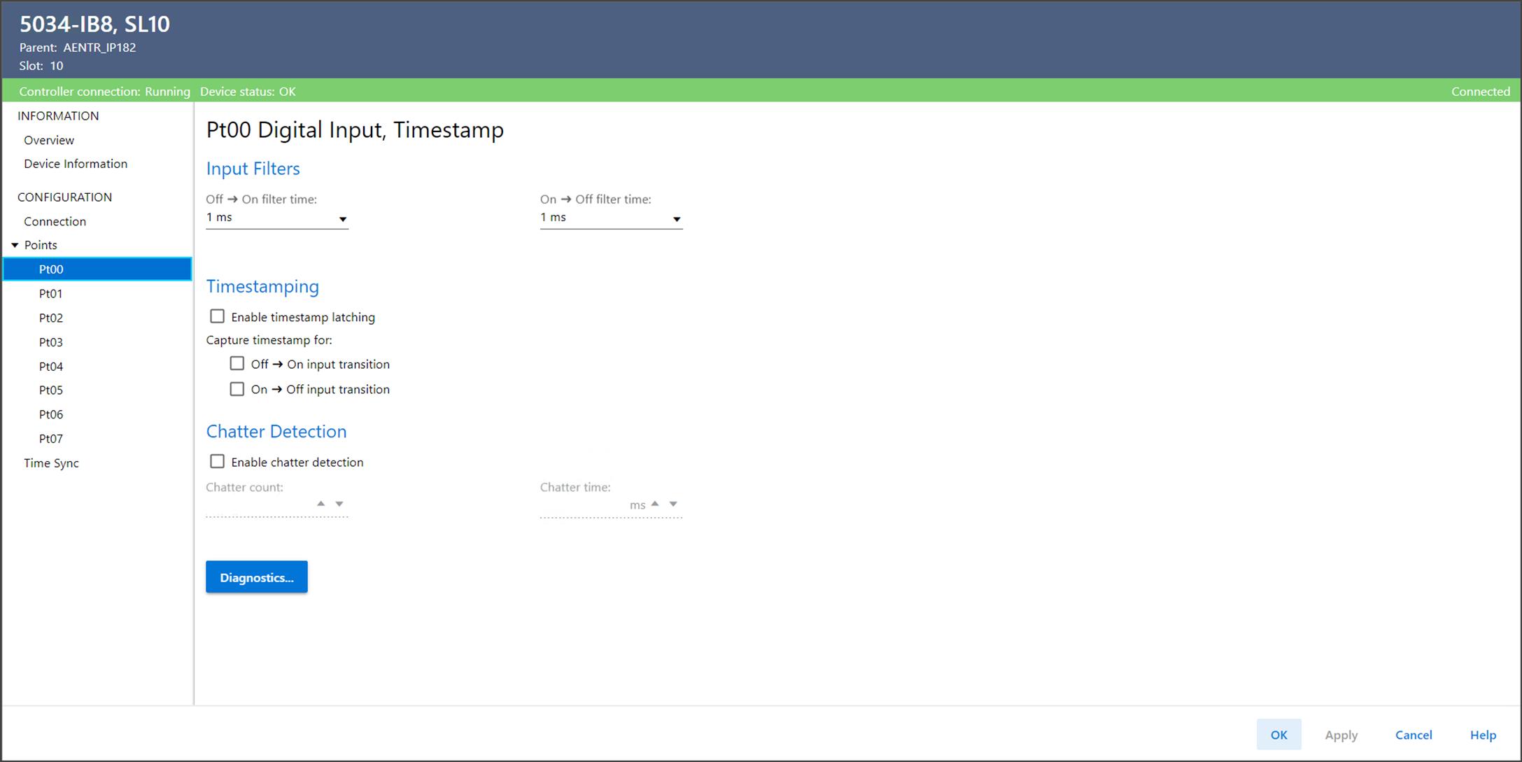 Ptxx Diagnosticsを表示するには、PointsまたはPtxxビューでDiagnosticsを選択します。