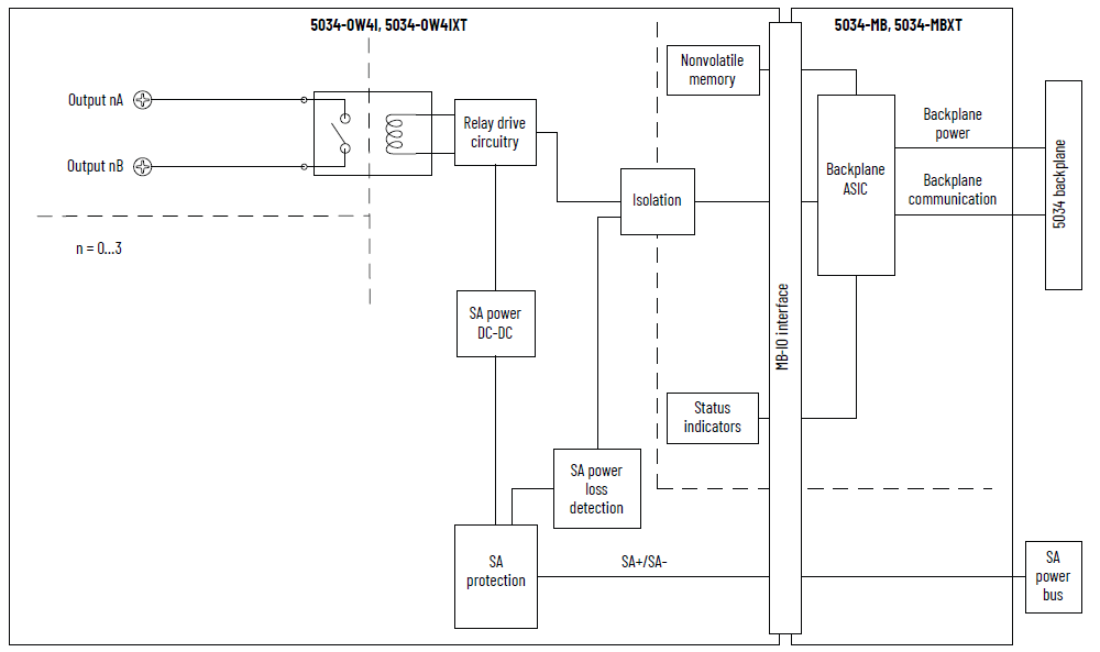 5034-OW4Iおよび5034-OW4IXTのファンクション・ブロック・ダイアグラム