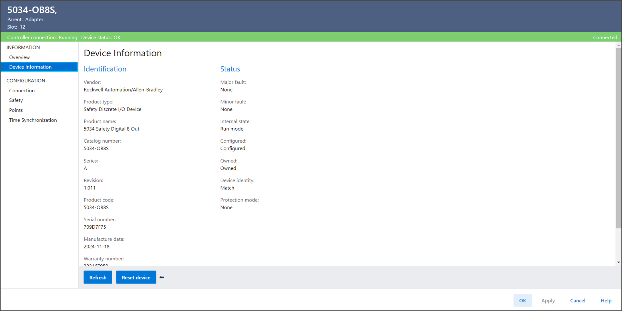 Device Informationは、デバイスがオンライン時のデバイスおよびステータス情報を表示するために使用します。
