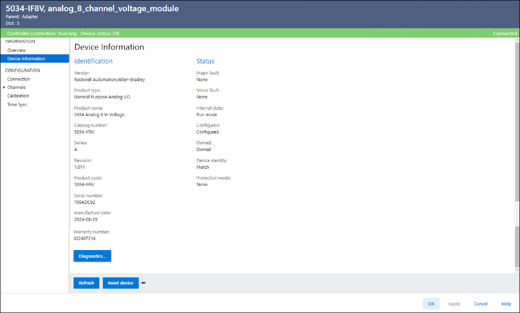 Device Diagnosticsを表示するには、Device InformationビューでDiagnosticsを選択します。