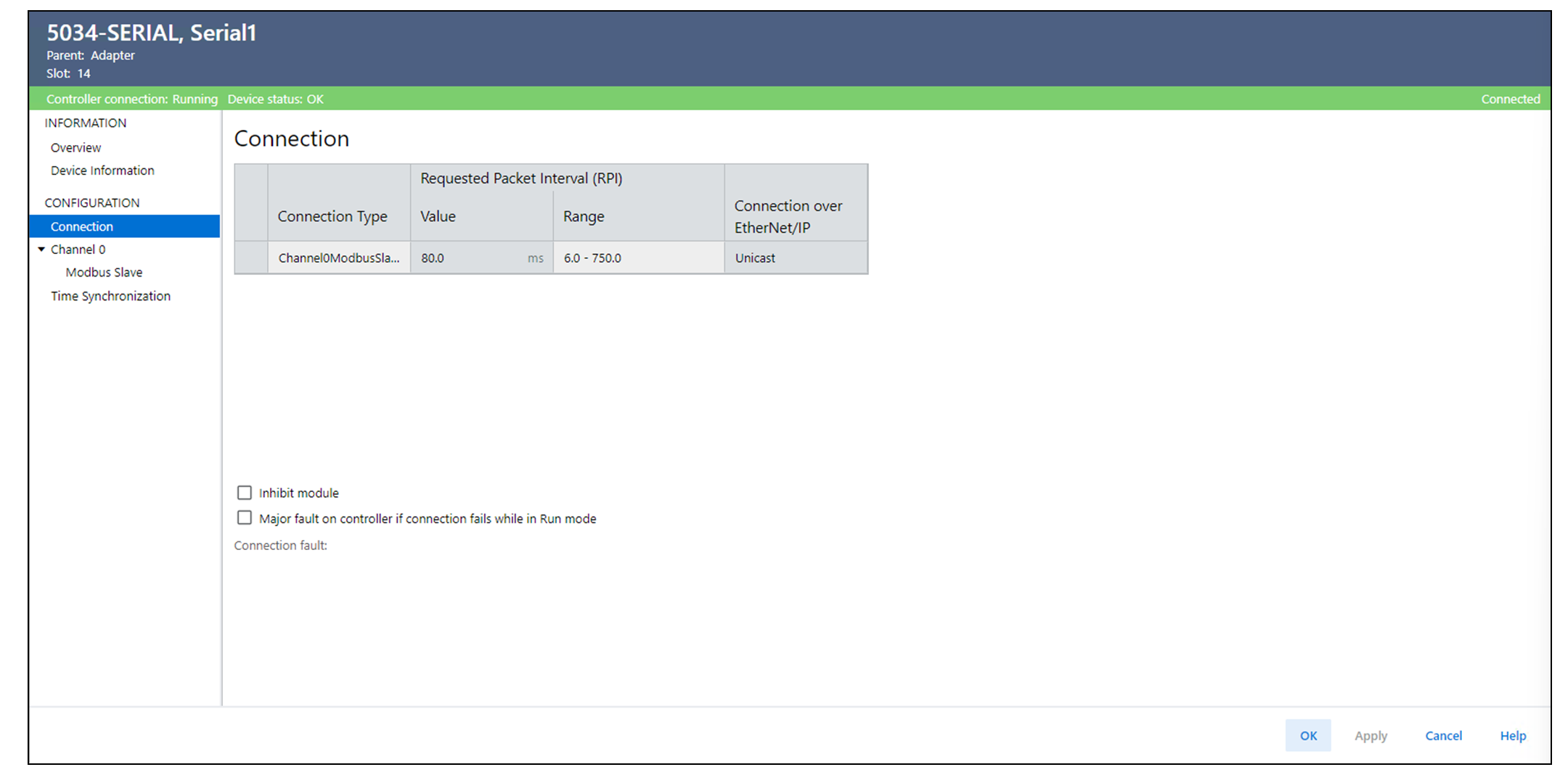 - コントローラがランモードのときのコネクションエラーに対するフォルト応答を構成する。