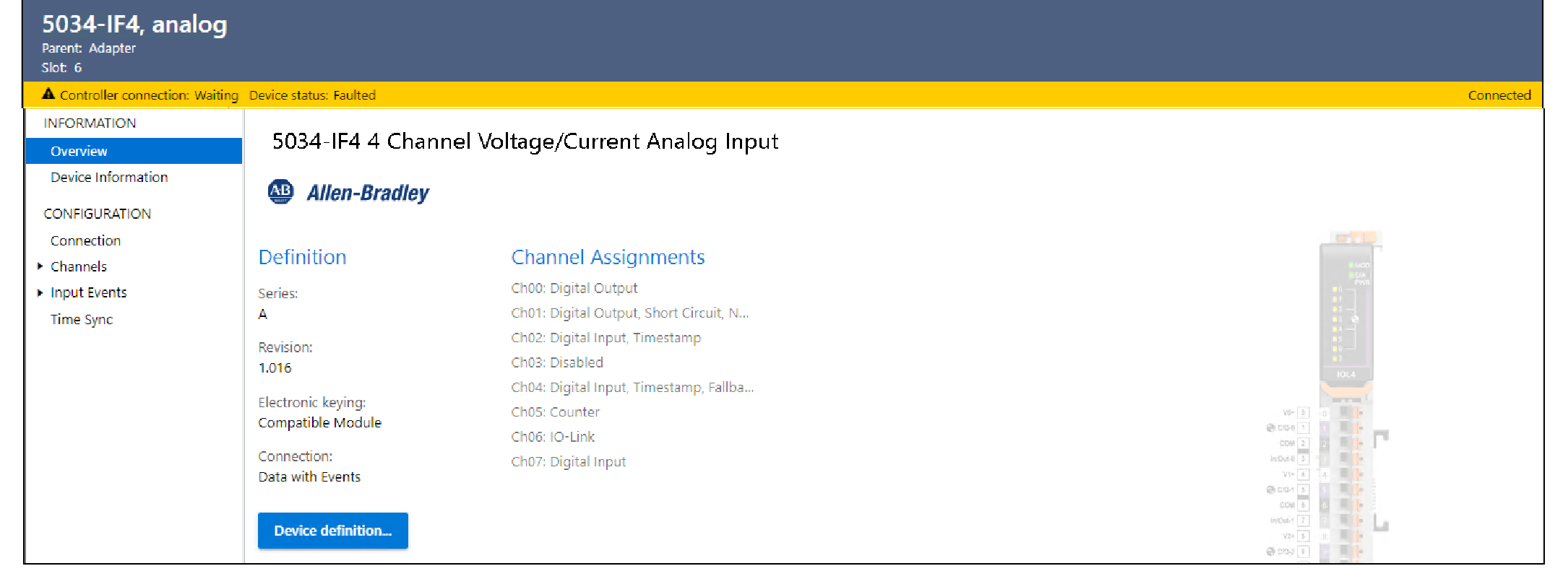 チャネルにフォルトが発生した場合は、Channels → Chxxビューに移動してDiagnosticsを選択し、チャネルの診断状態を確認します。