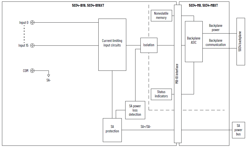 5034-IB16 및 5034-IB16XT 기능 블록 다이어그램