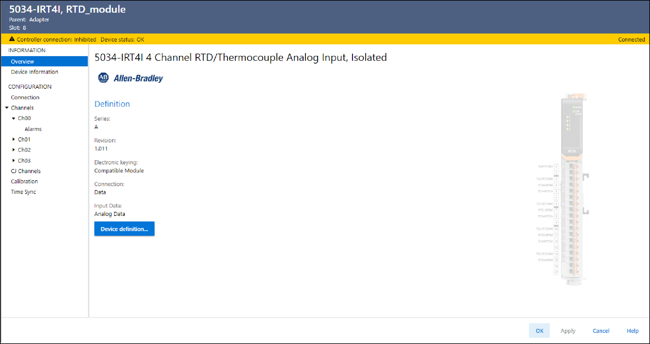 장치의 정의를 변경하려면 Overview 보기에서 장치 정의를 선택하십시오.