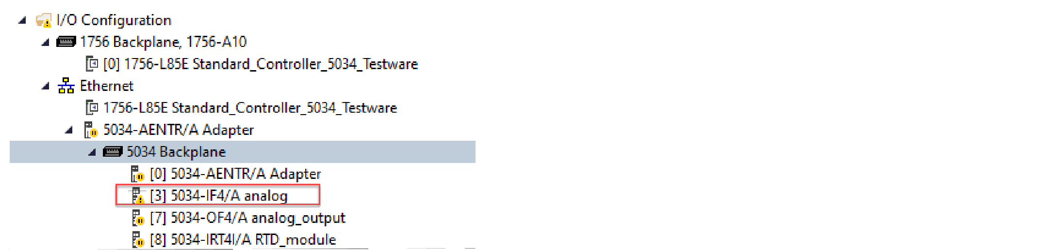 Controller Organizer에서 모듈에 경고 아이콘이 있는지 확인하십시오.
