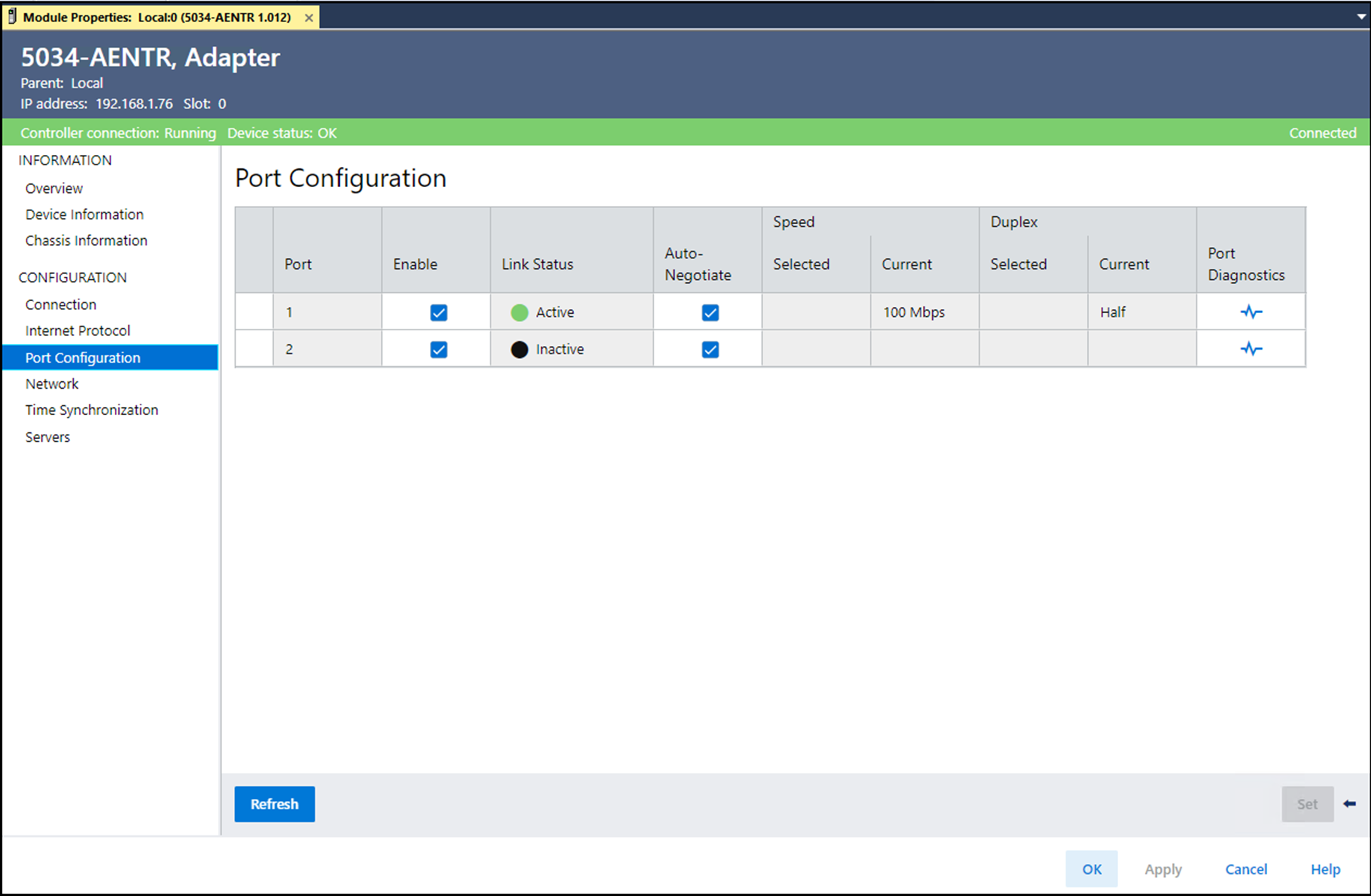 - Device Information 보기에서 Port Configuration을 선택합니다.