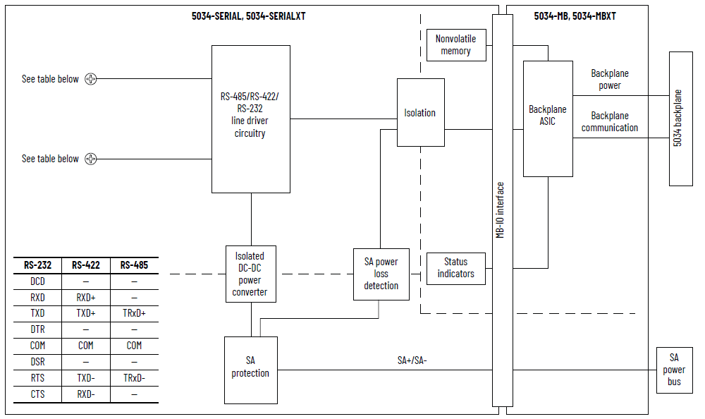 Diagrama de blocos funcionais 5034-SERIAL e 5034-SERIALXT