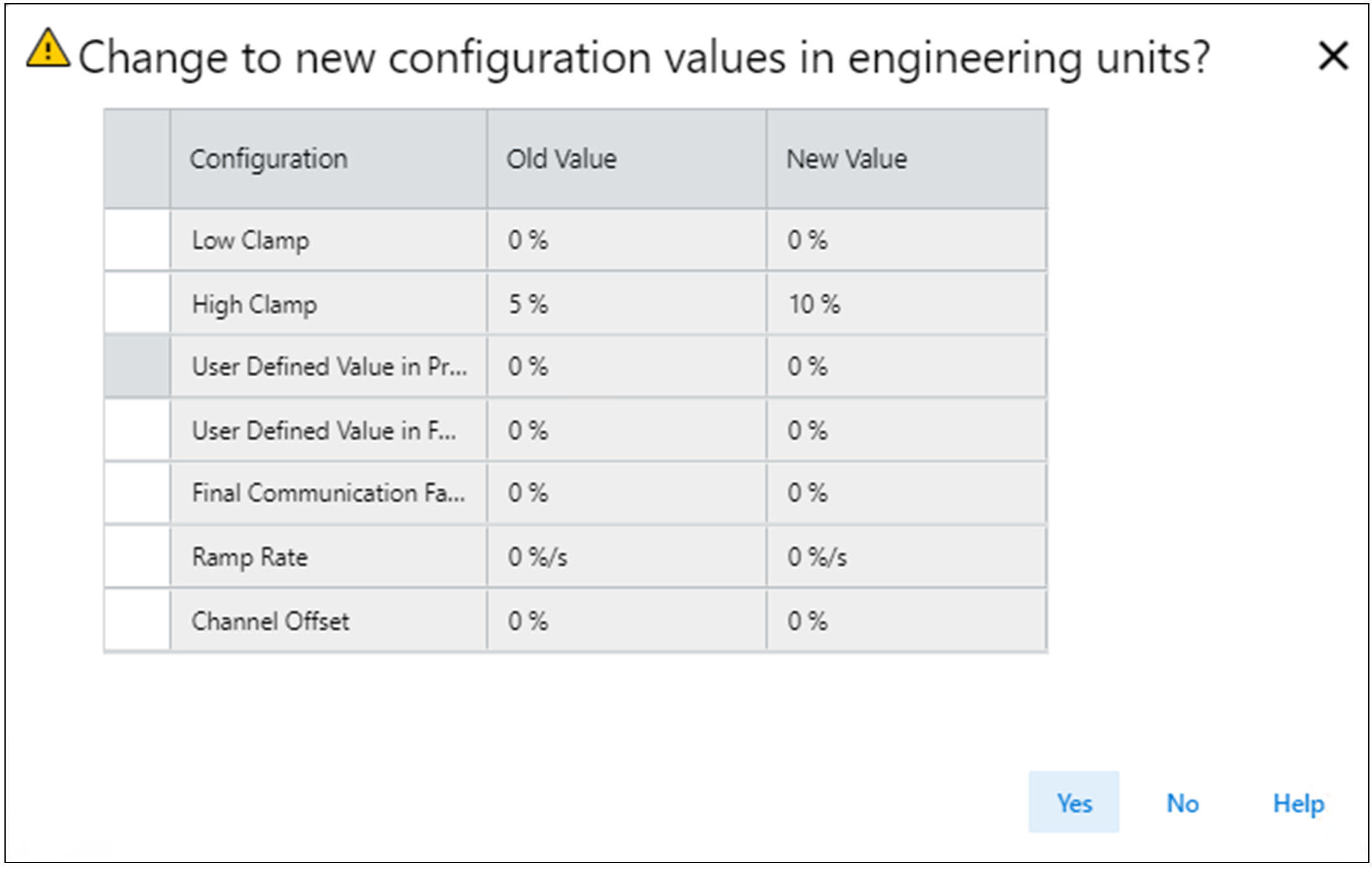 - Se você selecionar “Não” para cancelar a alteração, os valores antigos serão mantidos. Você pode selecionar Recalcular Unidades novamente ou alterar manualmente essas configurações com base na nova conversão de escala.