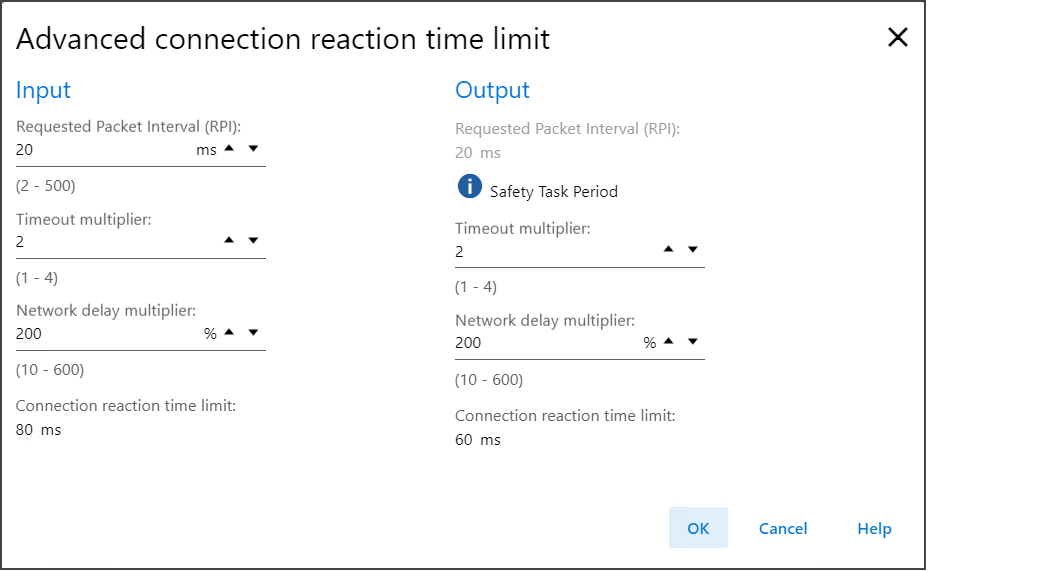 O período da tarefa de segurança determina o intervalo do pacote requisitado de saída.