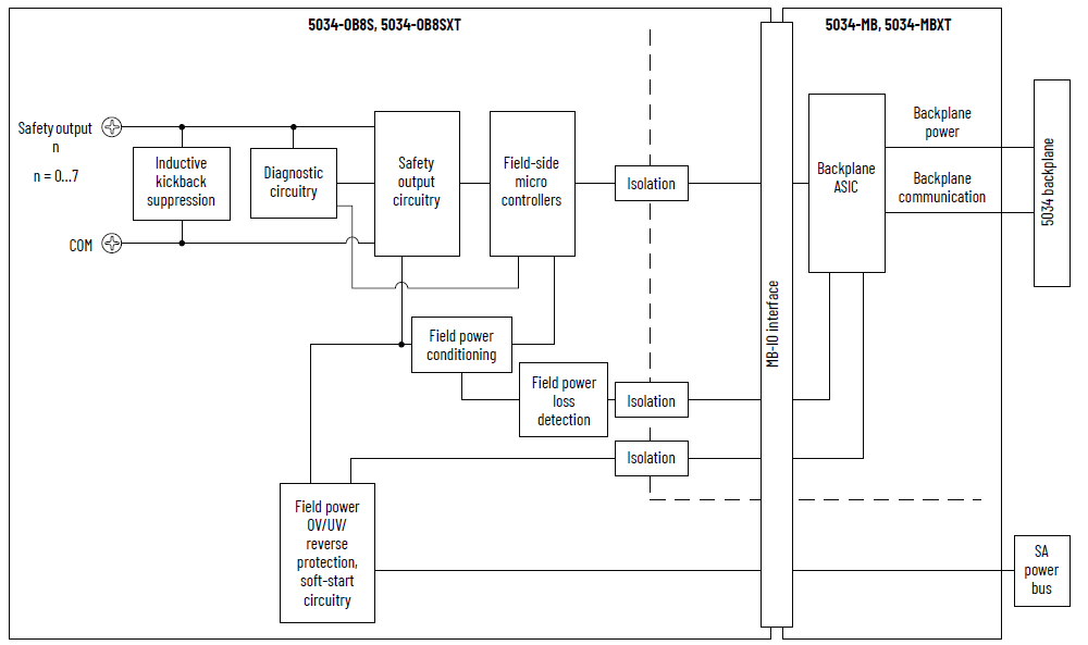 Diagrama de blocos de funções 5034-OB8S e 5034-OB8SXT