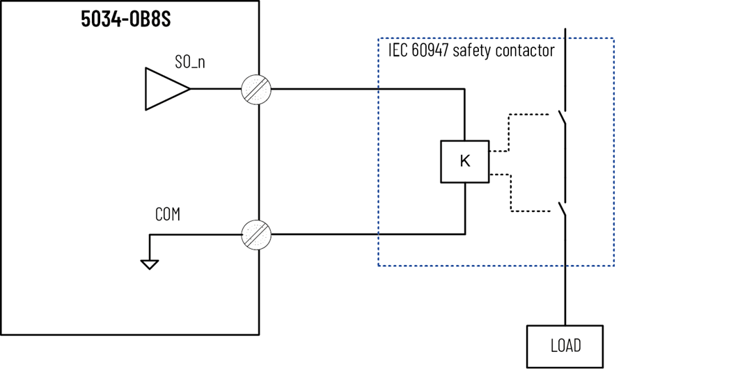 Os seguintes diagramas de fiação mostram os módulos de saída no modo Safety e no modo