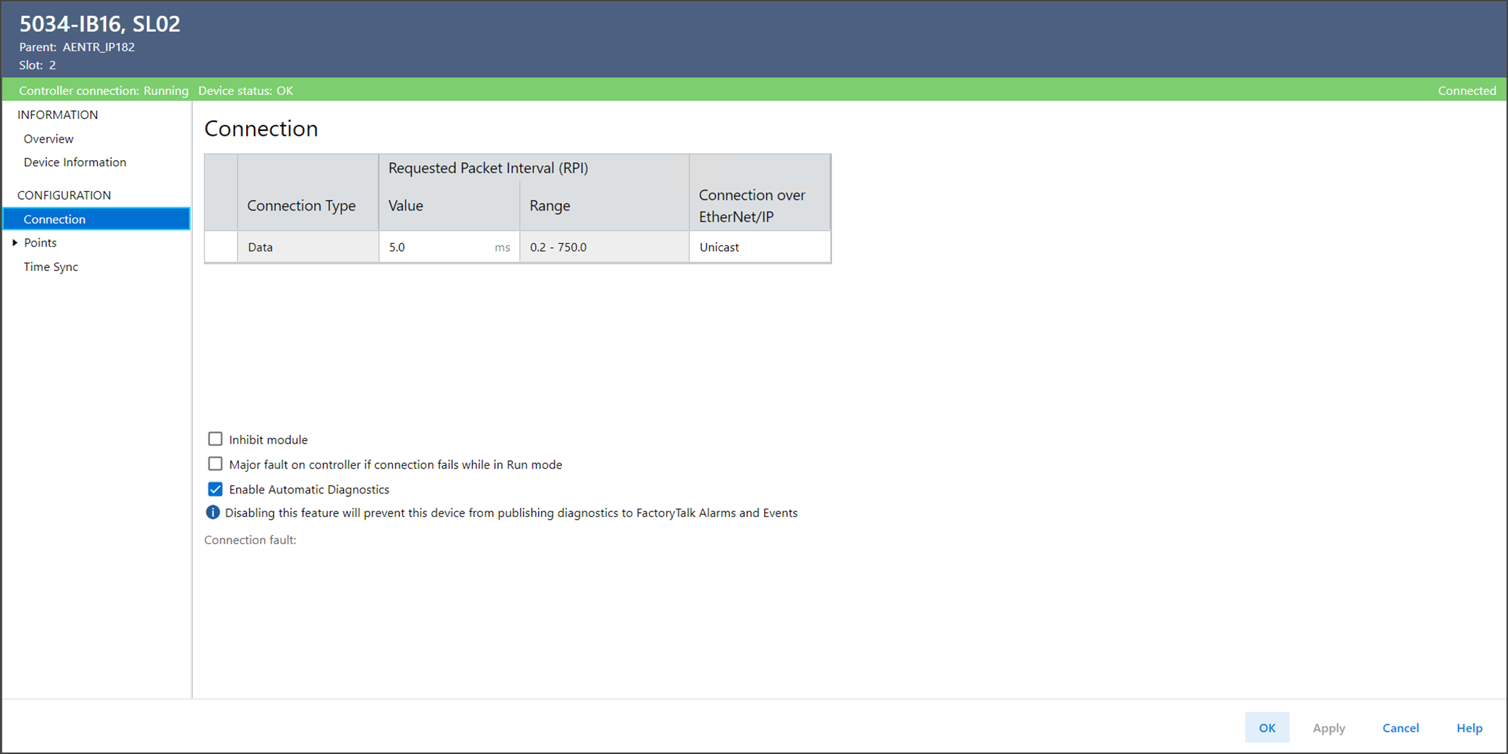- Configure a resposta a falhas para falhas de conexão enquanto o controlador estiver no modo de operação.