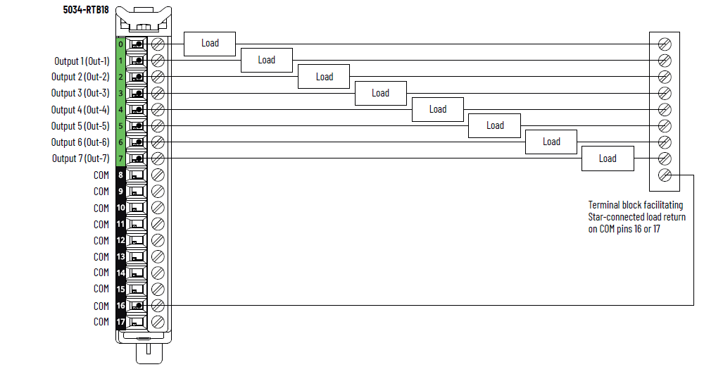 Diagrama de fiação do 5034-OB8 e do 5034-OB8XT – Fiação de retorno de
