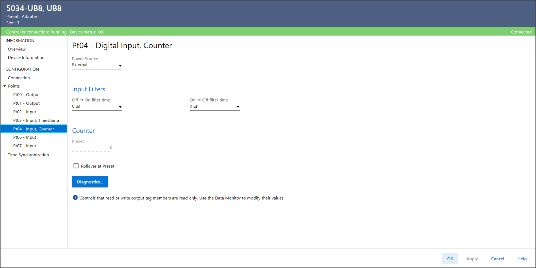 Use Ptxx – Entrada digital, Contador para visualizar ou configurar os pontos para o dispositivo.