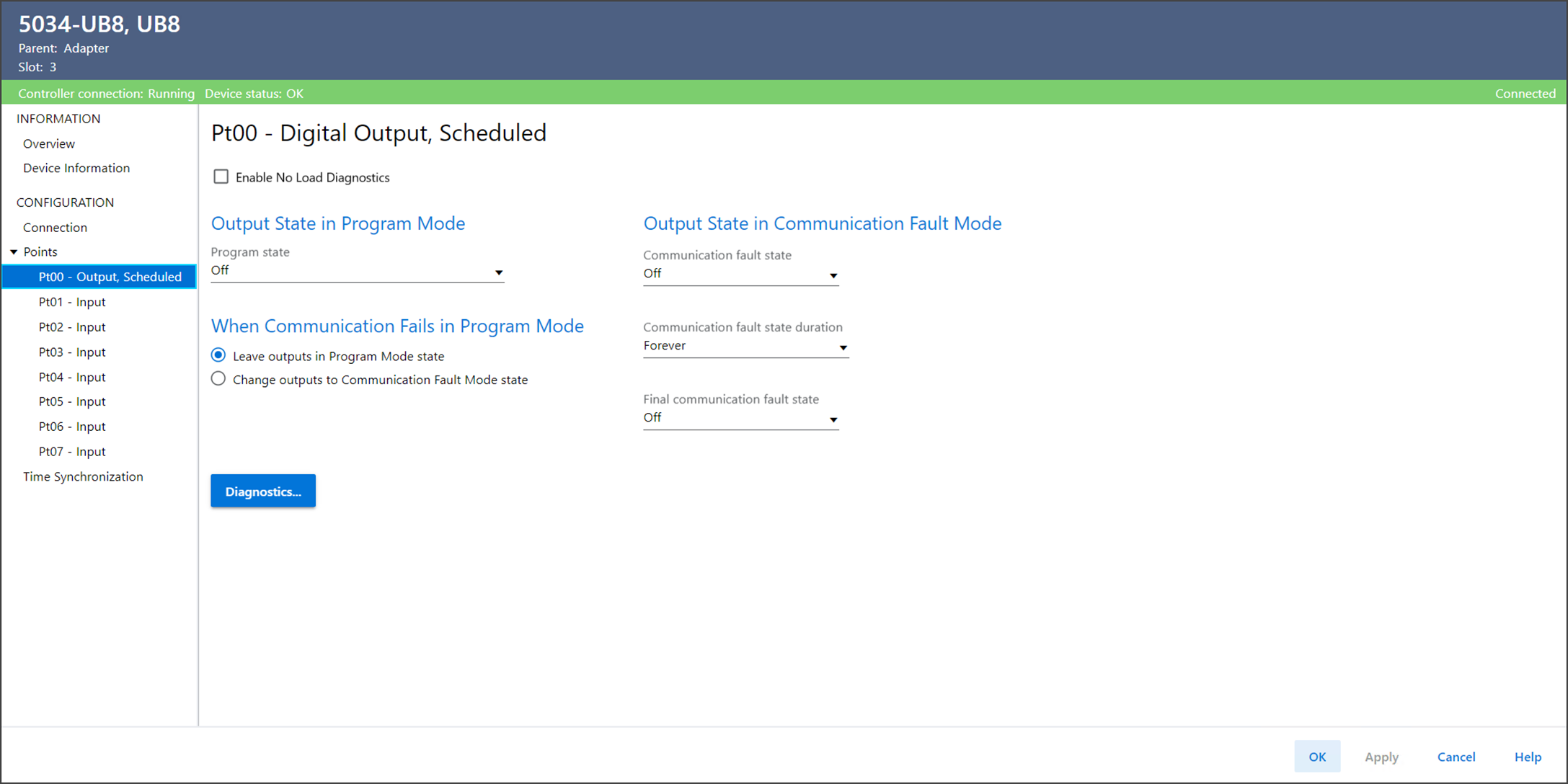 Use Ptxx – Saída digital, programada para visualizar ou configurar os pontos para o dispositivo.