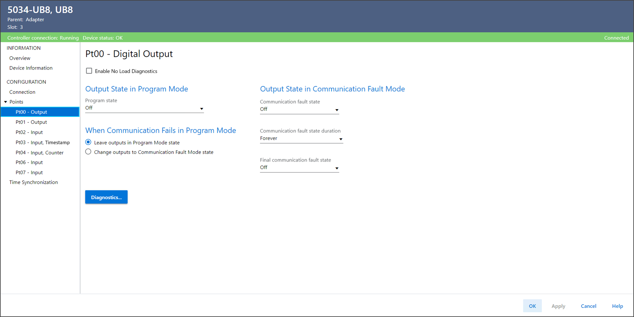 Use Ptxx – Saída digital para visualizar ou configurar os pontos para o dispositivo.
