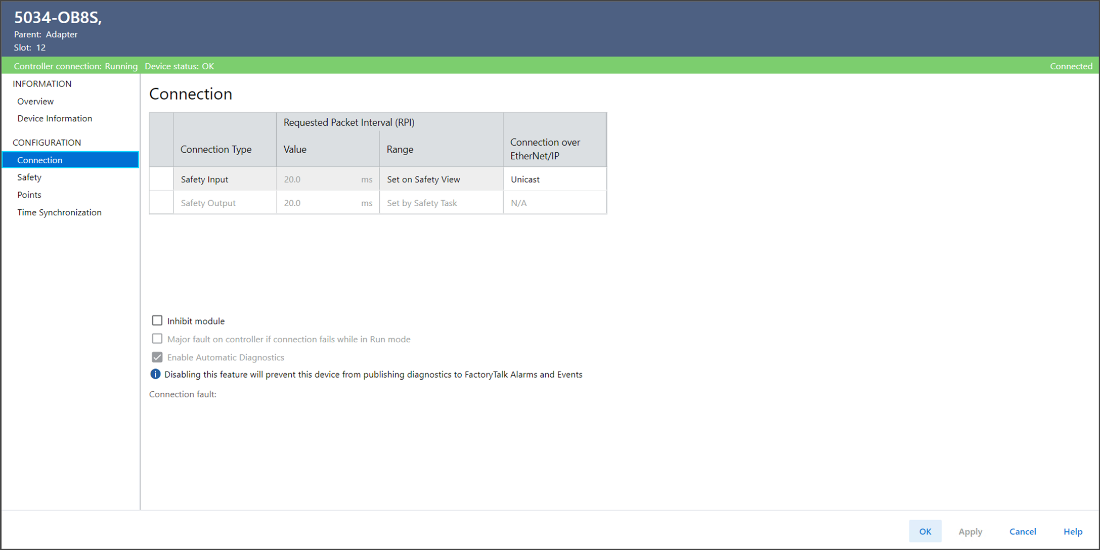 - Configure a resposta a falhas para falhas de conexão enquanto o controlador estiver no modo de operação.